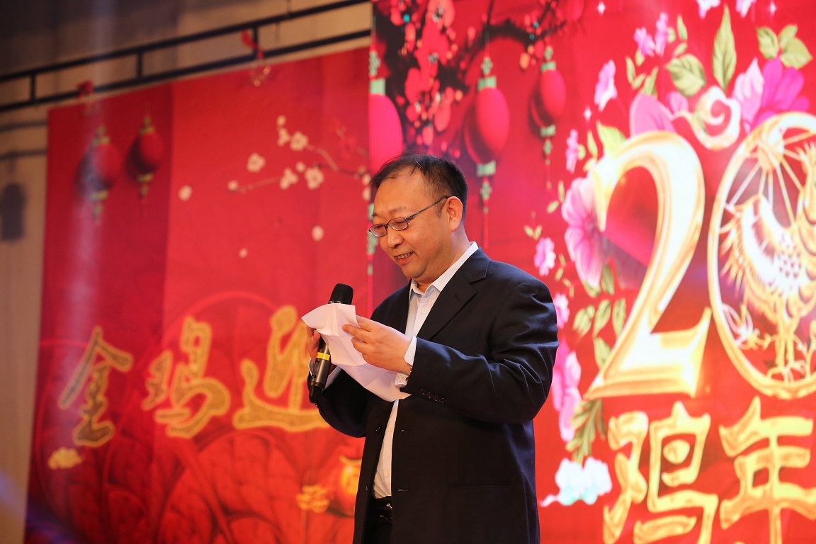 徐兆铭书记首先代表学院热情致辞,他为全院师生带来新年的美好祝福的同时,也向中国留学服务中心对学院项目的支持表示感谢。外国语学院院长黄振华虽未亲临晚会现场,但是在元旦晚会录制的的视频中,也对全体师生在2016年所做的工作与努力给予了充分肯定,并对此表示衷心的感谢。
